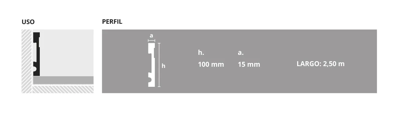 EPS (recycled expanded polystyrene) skirting board 100mm high, with cutting-edge design that highlights spaces with character. Variety of trendy colors.