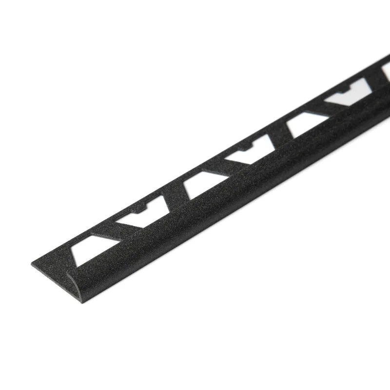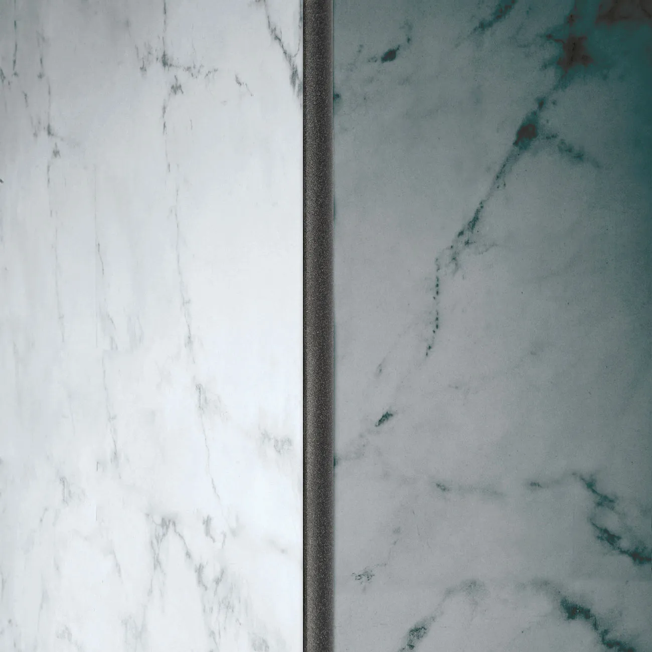 Perfil de aluminio de 7 mm con textura piedra de vista cuadrada que acompaña griferías y diseños rectos. Protege la unión de los revestimientos logrando un diseño moderno.