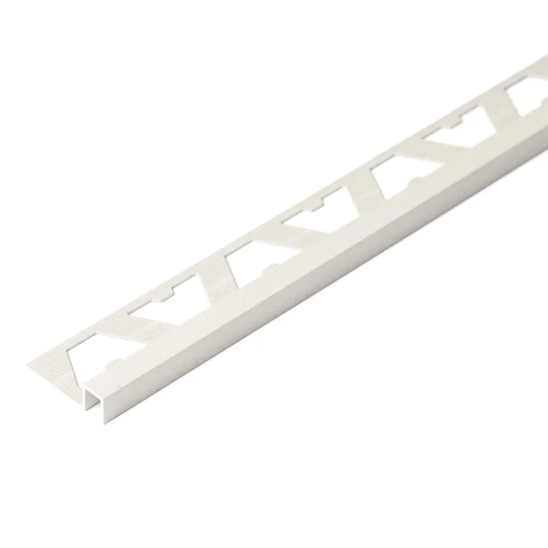 Perfil de aluminio de 7 mm con textura piedra de vista cuadrada que acompaña griferías y diseños rectos. Protege la unión de los revestimientos logrando un diseño moderno.