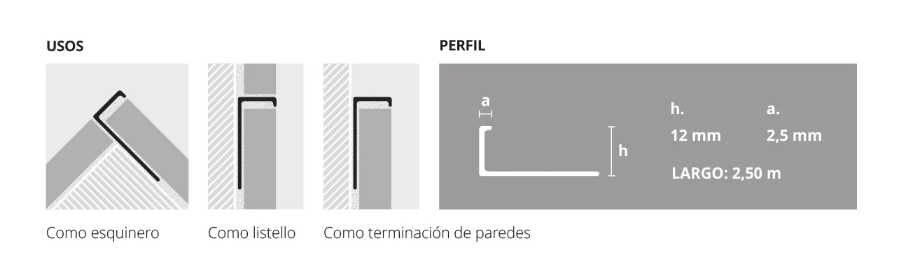 Perfil de aluminio textura piedra de ángulo recto de 2,5 mm de cara visible. Multifacético de vista delgada y diseño simple, que crea con elegancia líneas sutiles en los revestimientos.