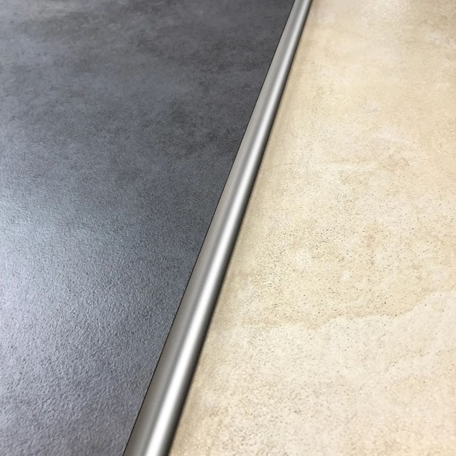 Perfil de acero inoxidable 304 esmerilado de 10 mm con diseño curvo permite unir el desnivel existente entre dos pisos. Diseño moderno que protege los bordes.