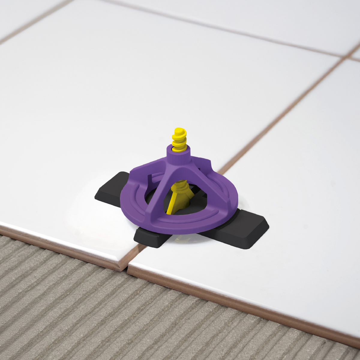 Utilizado junto con la Base de nivelación, garantiza un acabado uniforme y evita desplazamientos entre baldosas durante el fraguado.