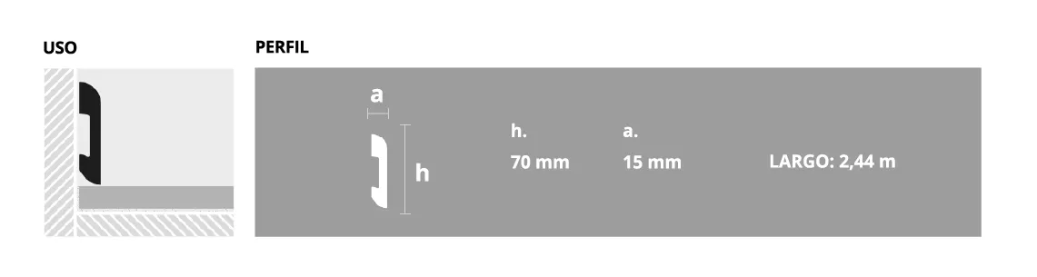 Epsilon Zócalo Classic 70 Mm X 15 Mm X 2,44 M Plata