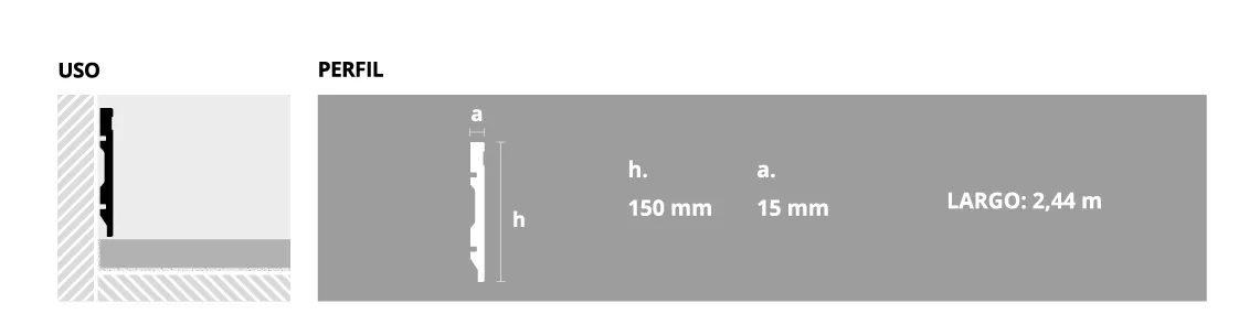Epsilon Zócalo Maxi Line 150mm X 15mm X 2,44m Blanco Mate