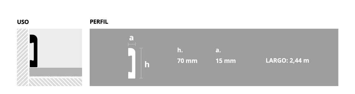 Epsilon Zócalo Round 70mm X 15mm X 2,44m Blanco Mate