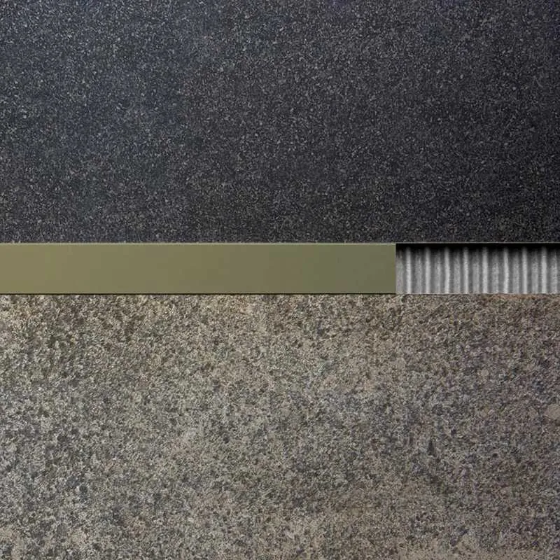 Perfil de aluminio con 20 mm de cara visible que se utiliza como guarda entre diferentes tipos de revestimientos.