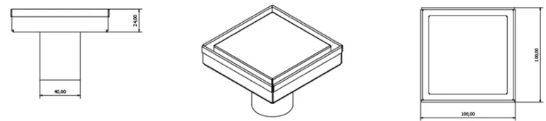 Desagüe cuadrado de acero inoxidable AISI 304. Ofrece dos opciones de tapas en un único producto: Clásica, con un acabado esmerilado y Ceramic, cuyo lado posterior es hueco y permite insertar el revestimiento.