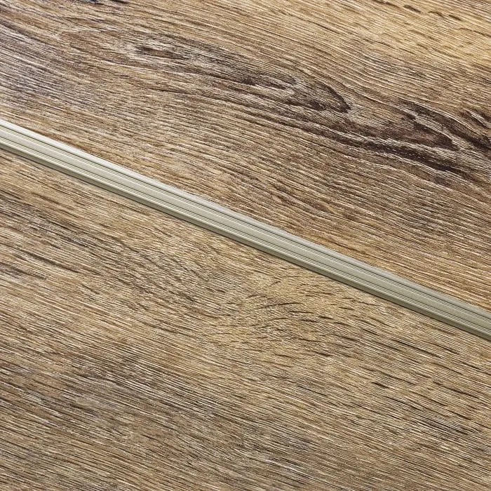 Perfil de aluminio diseñado para transiciones estéticas en las uniones de pisos vinílicos de 3, 4, 5 y 8 mm de espesor. Evita la formación de escalones y cubre los bordes de los revestimientos.