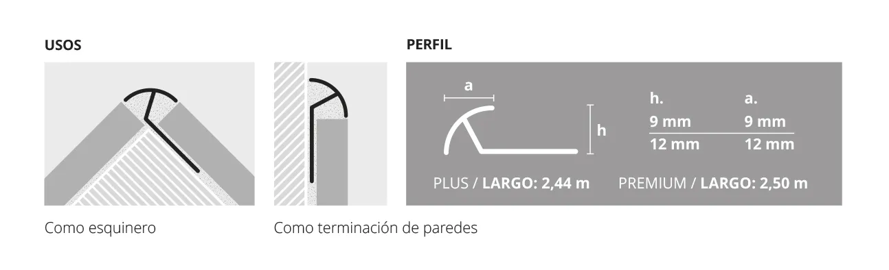 Perfil de PVC de 9 mm. Una solución accesible para proteger revestimientos y dar una terminación prolija.