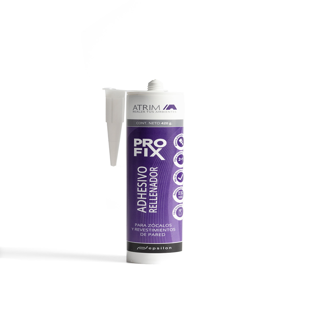 Adhesivo rellenador para guardaescobas sobre placas de yeso, maderas, cerámicos y porcelanatos.