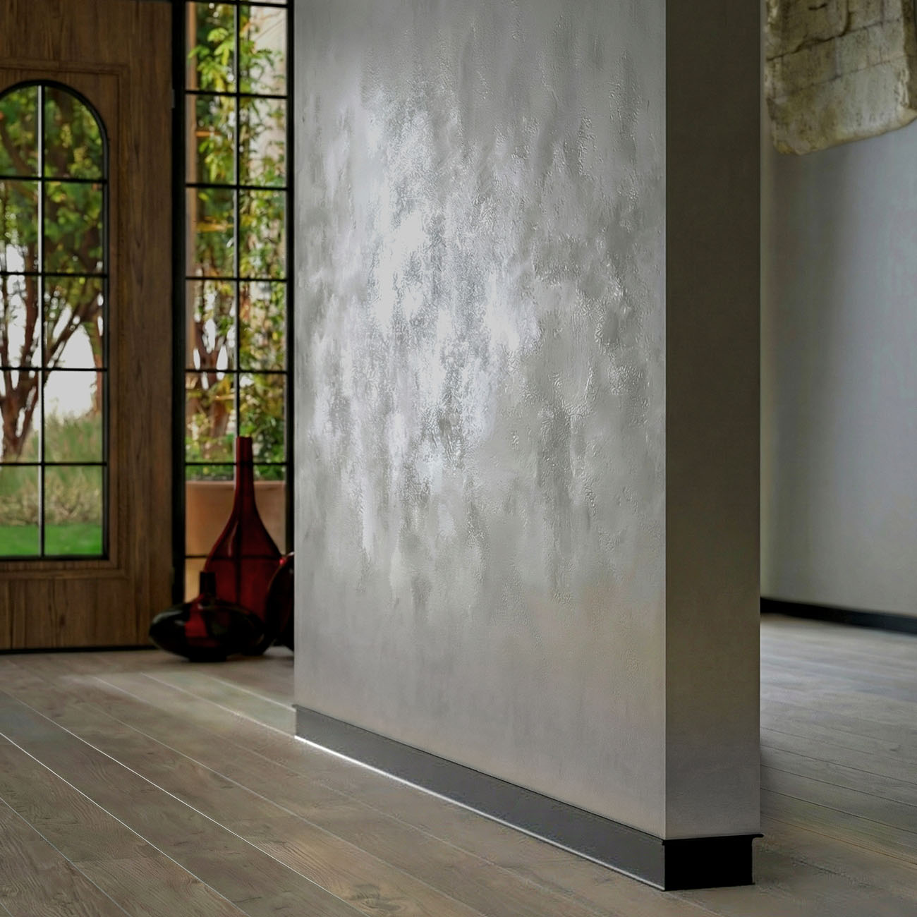 uso en interiores. Con una altura de 70 mm, el perfil se instala en la parte inferior del muro, generando