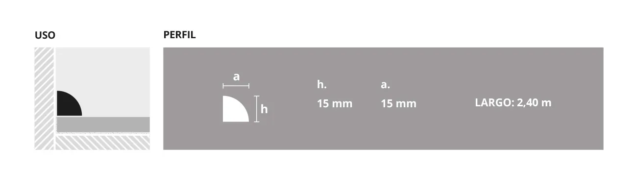 Junquillo de EPS (poliestireno expandido reciclado) diseñado para proteger la esquina formada entre el muro y el piso, evitando que esa unión quede expuesta a la fricción y a las filtraciones de polvo y humedad.