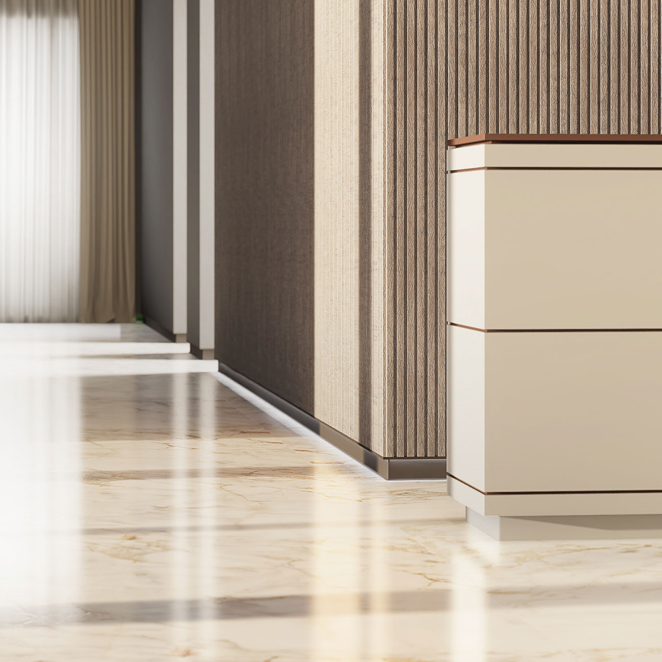 Zócalo empotrable fabricado en aluminio anodizado, aleación 6063 T5, especialmente diseñado para