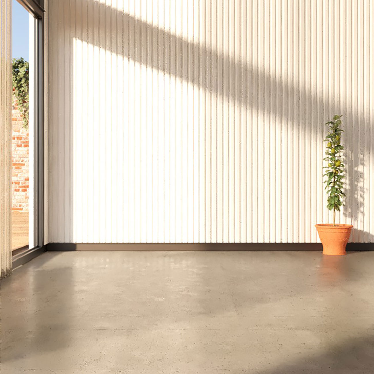 un elegante efecto de sombra que da la sensación de que la pared está suspendida en el aire.