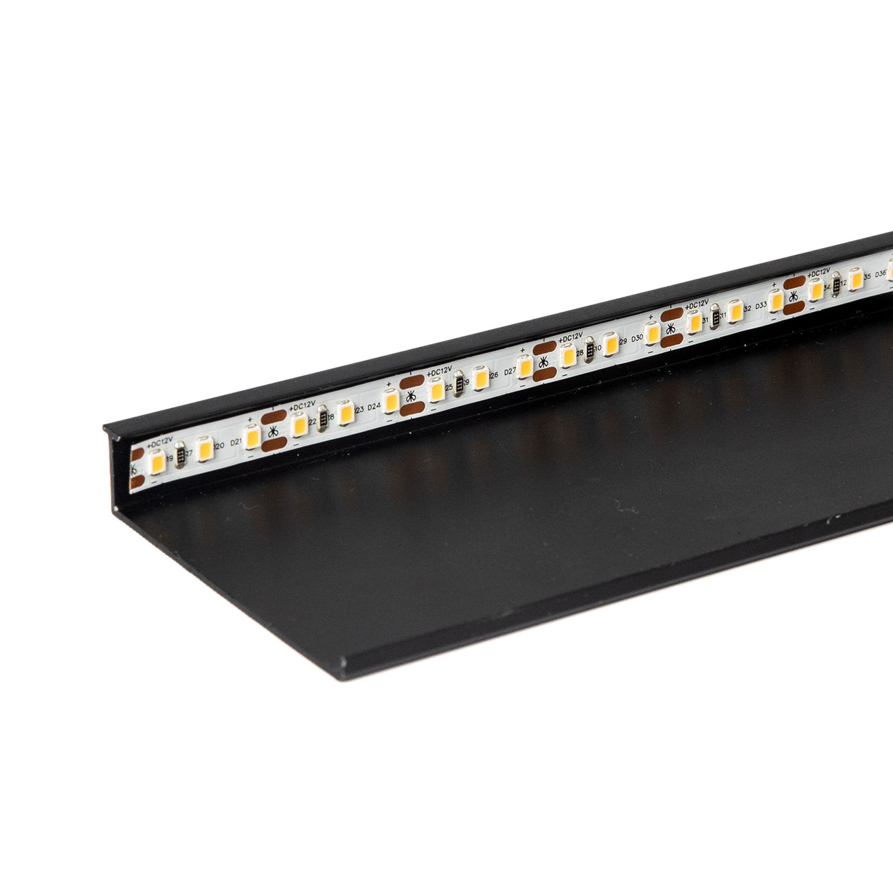 El canal interno permite la incorporación opcional de tiras LED de 8 o 10 mm, completamente ocultas a