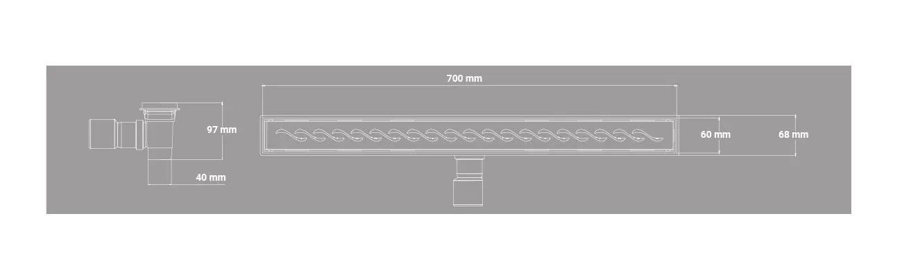 Desagüe Lineal Onda Mate Esmerilado 70 cm x 6,8 cm x 9,7 cm