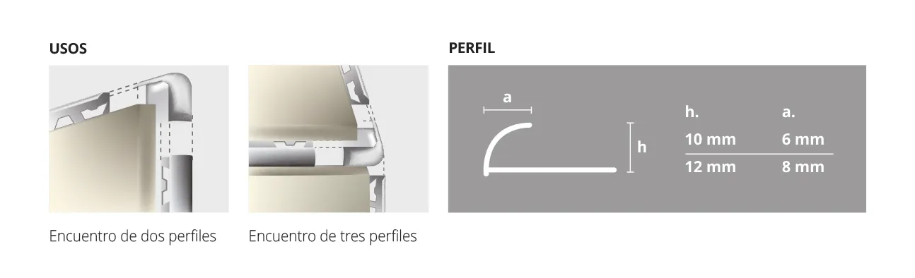 Accesorio premium de 10 mm de altura para la unión prolija de esquinas externas del guardacanto Arco, mantiene la homogeneidad de las superficies y evita el corte a 45º