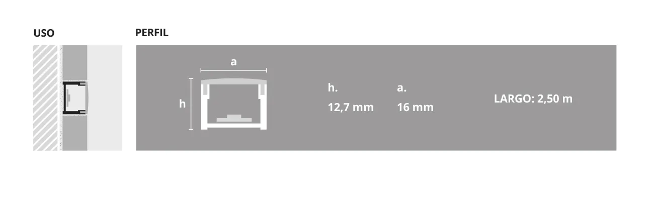 Terminal para Listello LED Simple Gris Claro 13 mm x 16 mm x 5 mm