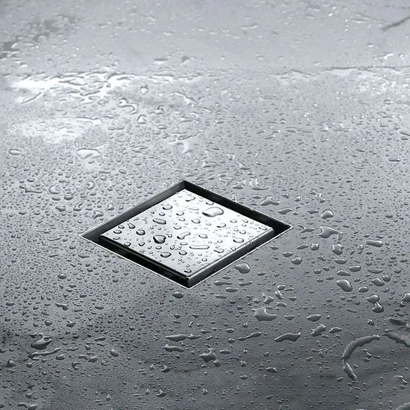 Desagüe cuadrado de acero inoxidable AISI 304. Ofrece dos opciones de tapas en un único producto: Clásica, con un acabado esmerilado y Ceramic, cuyo lado posterior es hueco y permite insertar el revestimiento.